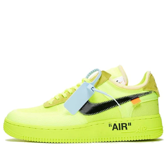 Los Nike Air Force 1 Low Off-White “Volt” son uno de los lanzamientos más llamativos de la colaboración entre Nike y Virgil Abloh. Lanzados en 2018, este par reinterpreta el clásico AF1 con el característico estilo deconstruido de Off-White™, pero en una versión electrizante gracias a su color neón.